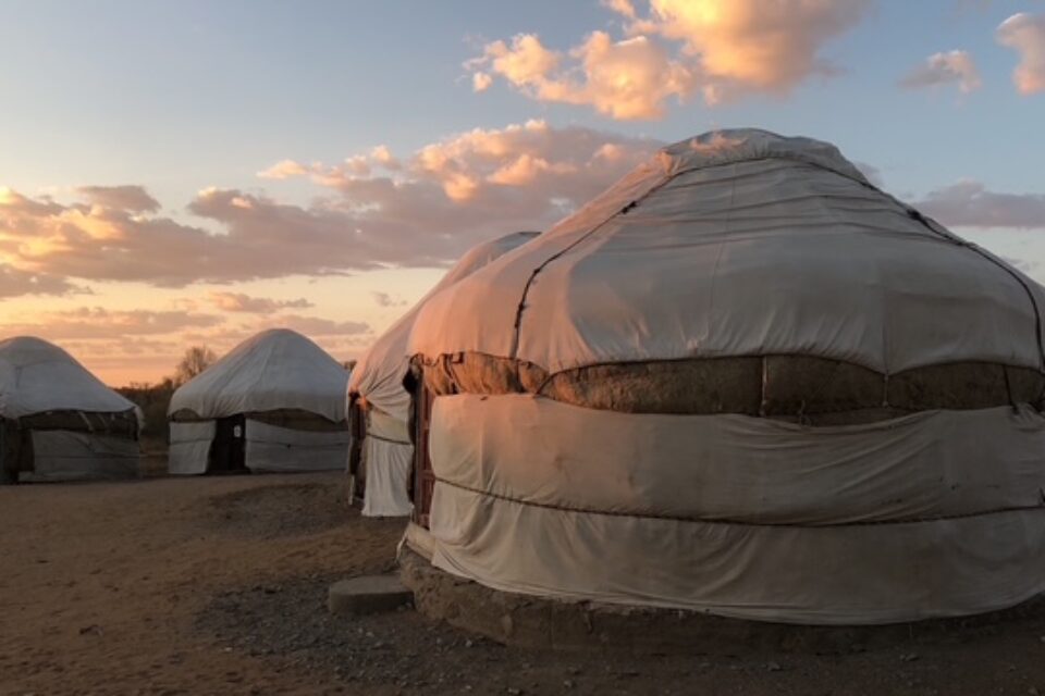 Przejazd z Buchary nad jezioro Ajdar – Kul, które powstało na skutek zalania olbrzymiego słonego zapadliska podczas powodzi na rzece Syr – Darii. Jezioro zajmuje powierzchnię 3000 km2. Odpoczynek, dla chętnych kąpiel. Dalej wyprawa do jednej z osad na pustyni Kyzył – Kum – Yangigazgan. Możliwość jazdy na wielbłądach. Kolacja. Nocleg w tradycyjnych uzbeckich jurtach na pustyni.