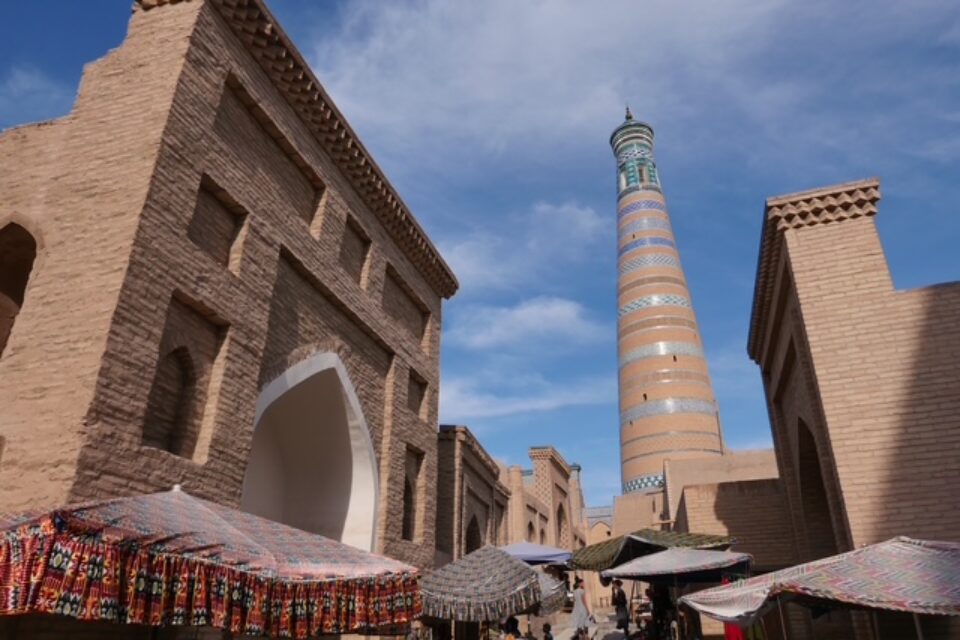 Przyjazd do Chiwy (UNESCO). Zakwaterowanie. Klimatem i architekturą miasto nawiązuje do baśni „Tysiąca i jednej nocy”. Spacer krętymi uliczkami starego miasta, gdzie lokalną atrakcją są przydomowe warsztaty, w których powstają wszelkiego rodzaju „cuda” z drzewa sandałowego: szachy, ramki, szkatułki. Relaks w lokalnych czajchanach. Nocleg w Chiwie.